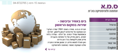 ס.מ.א אחסנה ולוגיסטיקה בע"מאתר דינאמי לחברת ס.מ.א - אחסנה ולוגיסטיקה בע"מ מעניקה מגוון פתרונות לוגיסטיקה ואחסון לעסקים בכל סדר גודל. |