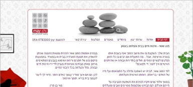 מאי בן פרין - יועצת פנג שוואיאתר אינטרנט דינאמי ליועצת הפנג שוואי מאי בן פרין. באתר אפשרות לעדכן באופן דינאמי את תמונת הרקע של כל עמוד ועמוד וכמו כן להוסיף מאמרים ותכנים ללא הגבלה. |